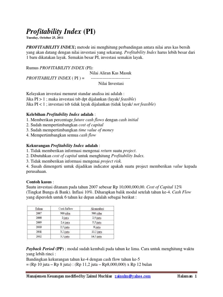 Cara Mudah Menilai Investasi Profitability Index Pi