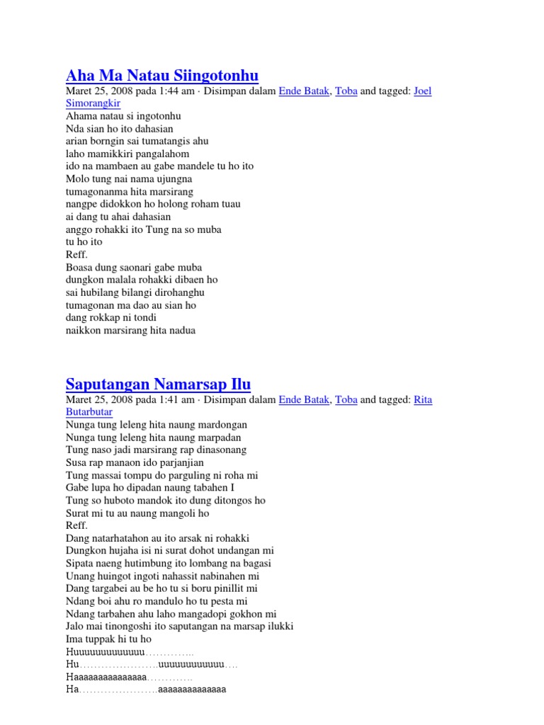 Doc Lirik Lagu Batak Skytech Tech Academia Edu