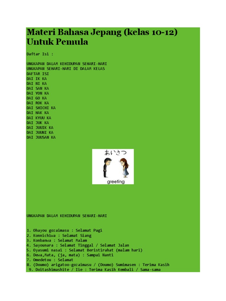 Rangkuman Materi Bahasa Jepang Bab 1 6 12 Sma