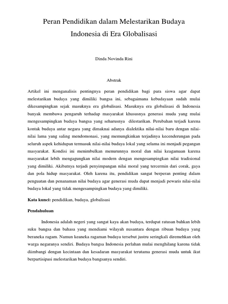 Peran Pendidikan Dalam Melestarikan Budaya Bangsa Di Era Globalisasi