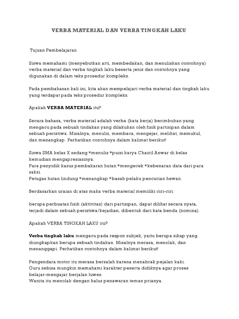 Soal Bahasa Indonesia Verba Material Dan Verba Tingkah Laku