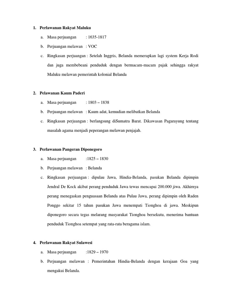 Perlawanan Rakyat Maluku Kaum Padiri Pangeran Diponegoro Rakyat Sulawesi Rakyat Kalimantan Brainly Co Id
