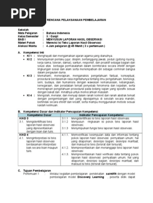 Teks laporan hasil observasi adalah teks yang memiliki fungsi untuk memberikan informasi mengenai suatu objek atau situasi dan hal lain yang telah diamati diinvestigasi atau diteliti secara sistematis. Teks laporan hasil observasi ialah teks yang memberikan informasi secara umum tentang sesuatu berdasarkan fakta dari hasil pengamatan secara langsung. Kelas X Bahasa Indonesia Bg.